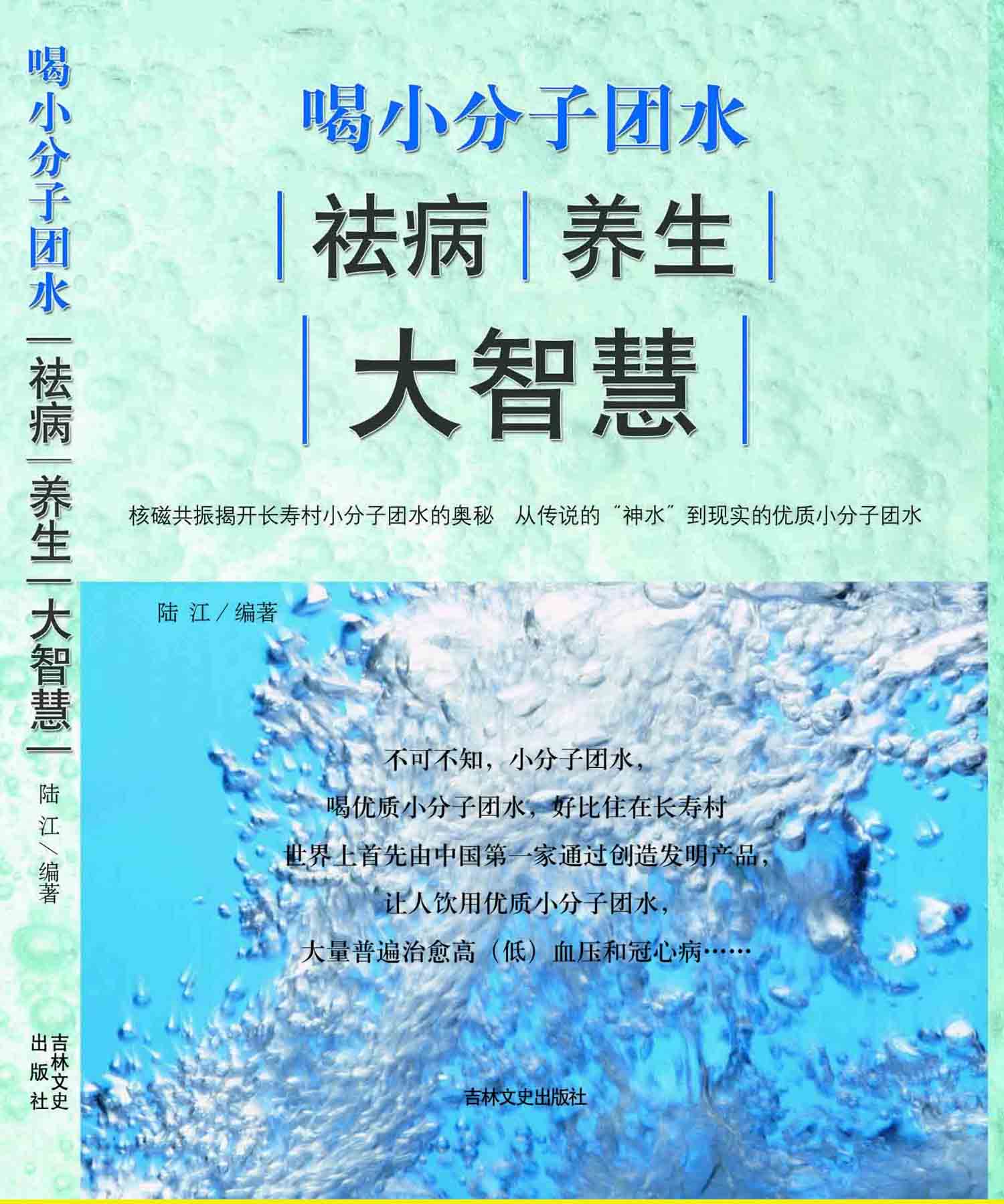 《喝小分子團水 祛病養生大智慧》一書,系陸江編著,2010年9月由吉林文史出版社發行,16開本內頁220,已售完。